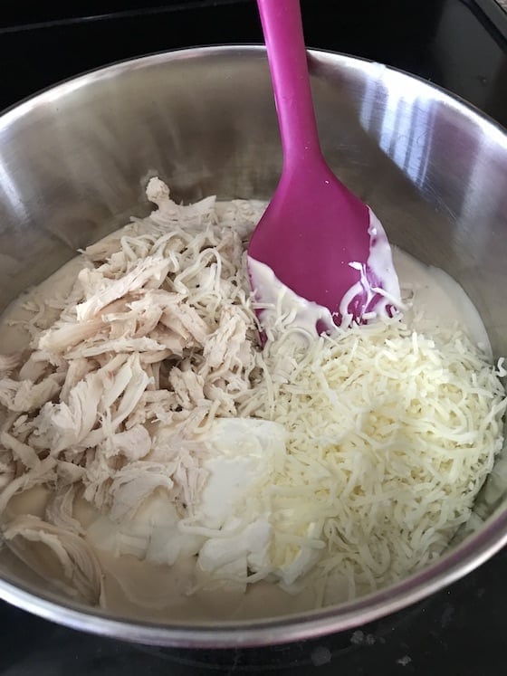 - 2 cups of cooked chicken (I used leftover rotisserie chicken)