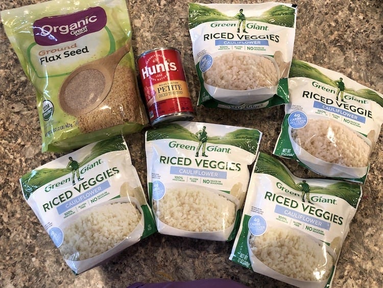 In this picture I had ordered Walmart brand Cauliflower Rice and they gave me Green Giant instead and it was a bigger package. They also replaced the Great Value Tomatoes with Hunts and gave me a bigger bag of the flax seeds.