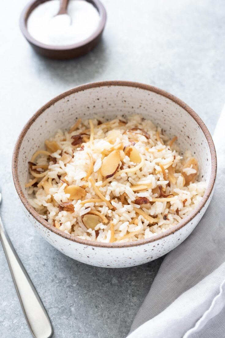 Almond Rice Pilaf is fluffy, flavorful and a delicious way to upgrade your next pot of white rice! It's a special family recipe that everyone will love, and it cooks up in about 30 minutes!