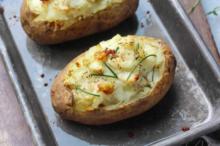 This Herb and Goat Cheese Twice Baked Potato Recipe is the perfect recipe for leftover baked potatoes! Creamy and so delicious.