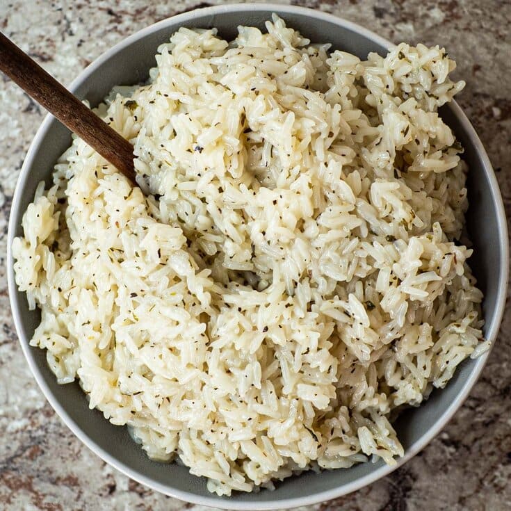Lemon herb rice is a super easy side that tastes great with almost anything! Ready in under 15 minutes, it will remind you of a creamy risotto but with almost none of the work.