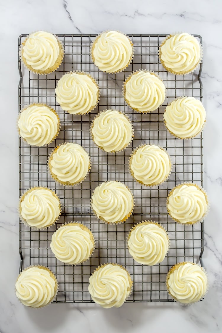 - Let the cupcakes cool in the muffin tin for 5 minutes, then transfer them to a cooling rack to cool completely.
