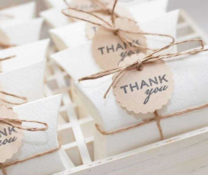 For instance, you could choose to gift handmade candles, little bottles of olive oil, wildflower seed pouches, coffee beans, soap bars, or handmade jam!